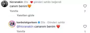 Hicran Akın'ın, eşinin bir paylaşımına 'Canım benim' yorumunu yazdığı görüldü.