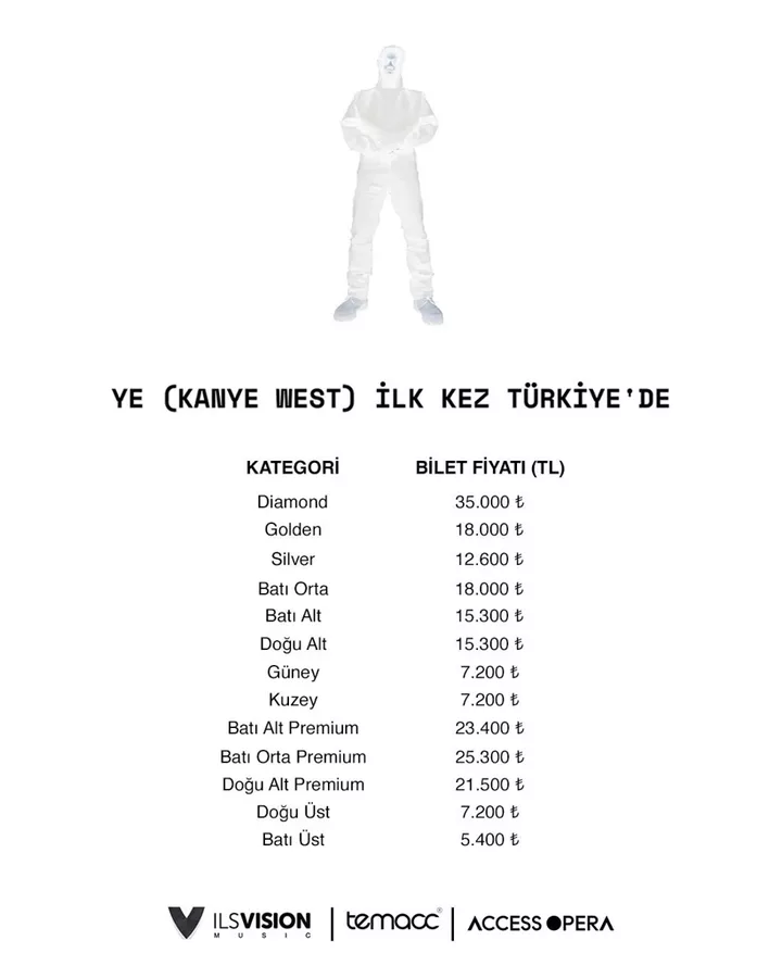 Bu kapsamda, 9 Mart saat 15.00 itibariyle biletler resmen satışa çıkacak. TemaCC'den yapılan açıklamaya göre, etkinlik için en ucuz bilet 5 bin 400 TL, en pahalı bilet ise 35 bin TL olacak. Fiyat listesi şu şekilde;