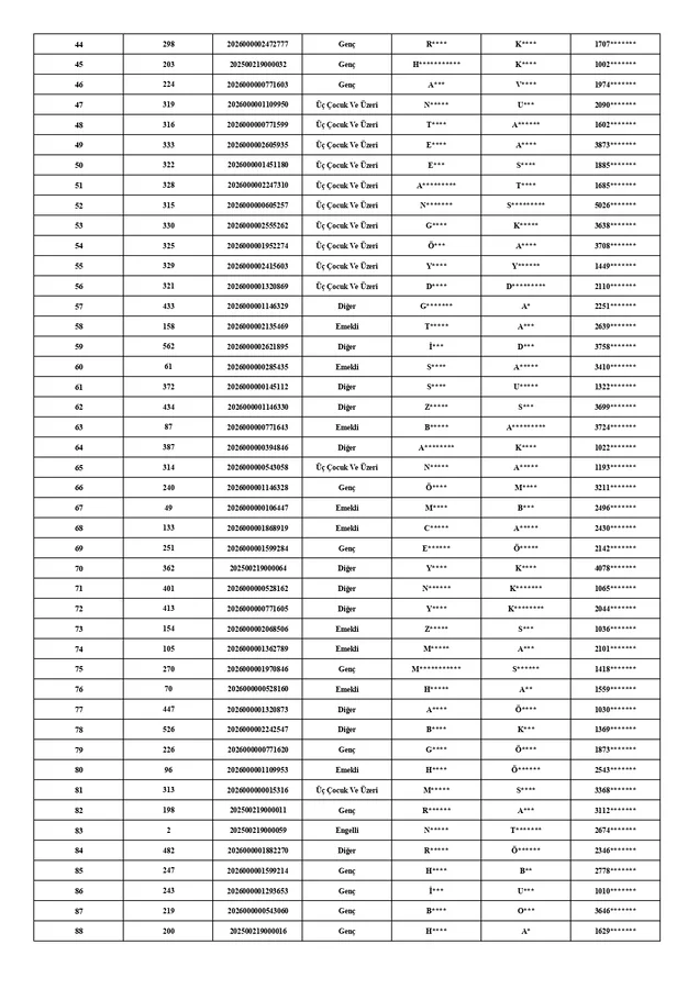 Sonuçlarda en yüksek kontenjanın emekli kategorisinde olduğu görülürken, gençler ve çok çocuklu aileler için ayrılan kontenjanlar da dikkat çekti.