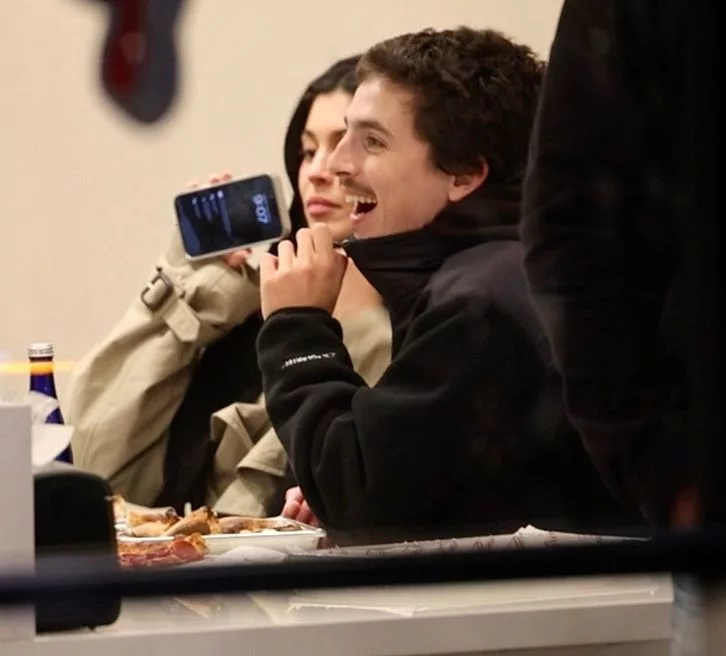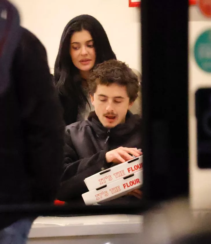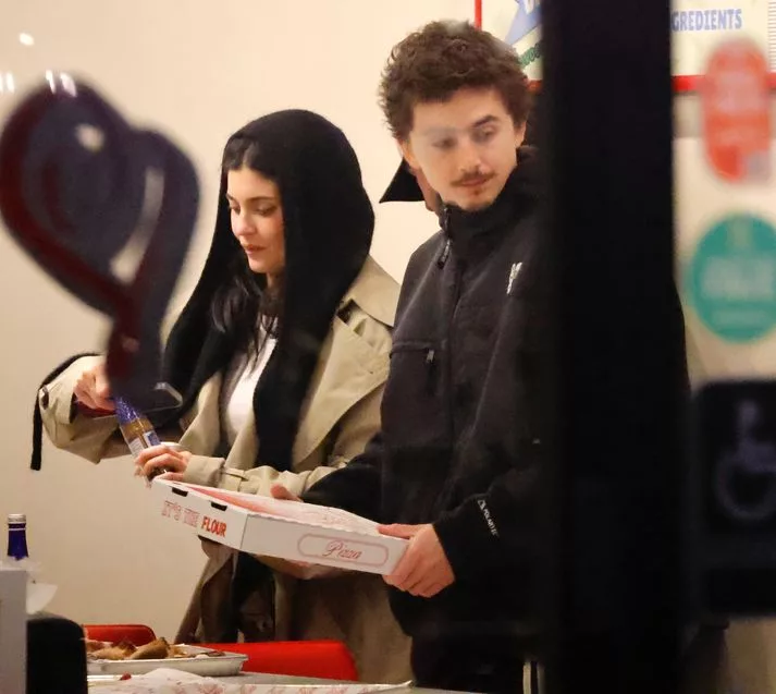 Dükkanın kapıları kilitlendiği için pizzacı tamamen Kylie Jenner ile Timothee Chalamet'e aitti.