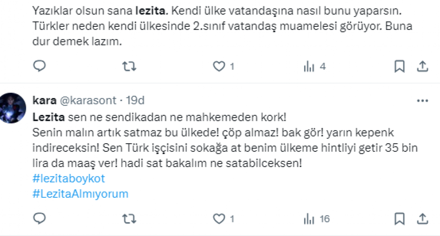 Bu olayın üzerine vatandaşlar Lezita hakkında boykot çağrısında bulundu.