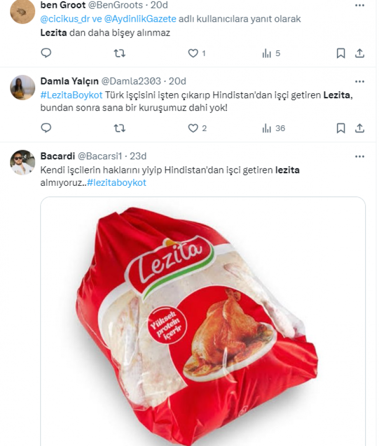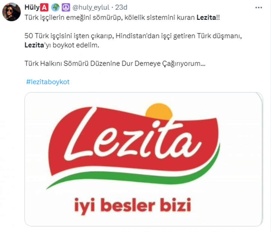 Duruma ilişkin soL'a açıklamada bulunan Lezita, yabancı işçi çalıştırmanın "işin sürdürülebilirliği ve üretimin devamlılığı açısından başvurulan bir yöntem" olduğunu ifade etti. Ramazan ayı öncesinde ürünlerine yönelik talebin yükselmesini beklediklerini belirten şirket, konuyla ilgili resmi makamlara yaptıkları başvurunun da Nisan 2023 tarihinde gerçekleştirildiğini aktardı. Şirketin açıklamasında önce çıkanlar şöyle: