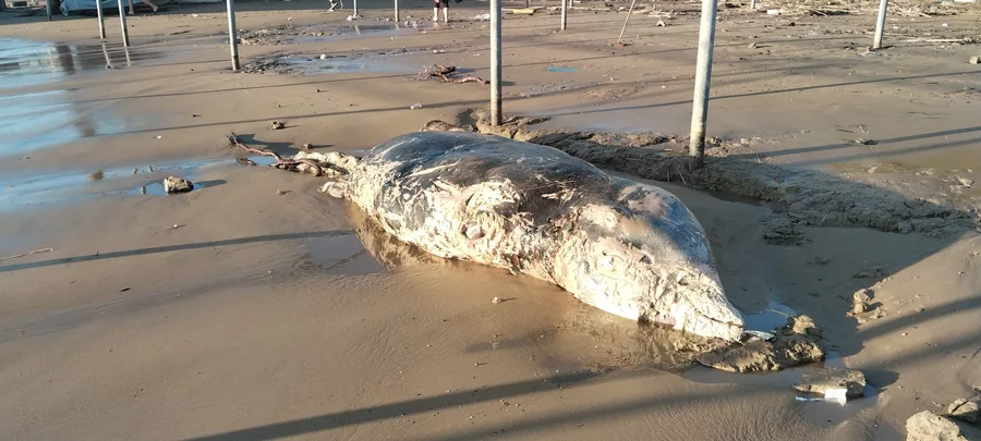 Kıyıya vuran kütleyi inceleyen ekipler, bunun yaklaşık 3,5 - 4 metre uzunluğunda dev bir yunus balığı olduğunu tespit etti. Gece saatlerinde etkili olan dev dalgaların etkisiyle karaya vurduğu tahmin edilen yunusun, uzun süre önce öldüğü ve vücudunda ciddi çürümeler meydana geldiği görüldü.