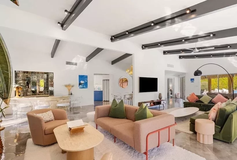 Yaklaşık 280 metrekarelik yaşam alanına sahip olan evde dört yatak odası ve dört banyo yer alıyor. Mülk, dönemin Palm Springs mimarisinin önemli isimlerinden Charles Du Bois tarafından tasarlandı; yapı ise Alexander Construction Company tarafından, bölgenin modern ve karakteristik estetiğini yansıtacak şekilde inşa edildi.