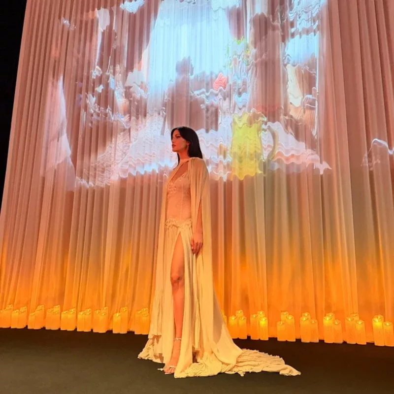 Dizinin galasın su perisi gibi gözüken ve oldukça zarif ve nahif bir elbise tercih eden Eylül Lize Kandemir'in röportaj yapıldığı sırada sürekli yırtmacına giden eli dikkat çekmişti.
