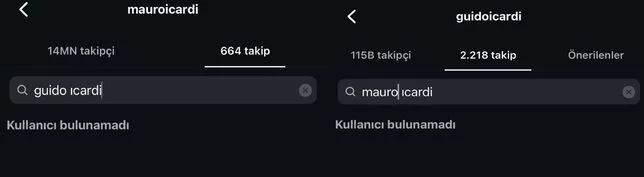 Öte yandan bir başka dikkat çeken detay da iki kardeş arasındaki sosyal medya mesafesi oldu. Guido Icardi'nin, Mauro Icardi'nin nişanlısı China Suárez ile karşılıklı takipleşmesi ancak Mauro Icardi ile birbirlerini takip etmemesi gözlerden kaçmadı.