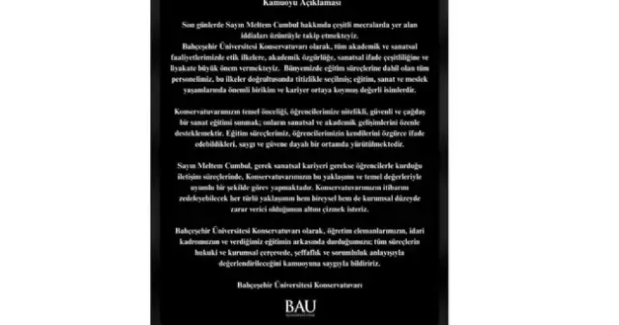Bu tartışmaların ardından, Bahçeşehir Üniversitesi Konservatuvarı yazılı bir açıklama yaparak süreçle ilgili kamuoyunu bilgilendirdi. Üniversite yönetimi, atama süreçlerinin kurumsal ilkeler ve liyakat çerçevesinde yürütüldüğünü vurguladı. Açıklamada ayrıca, Meltem Cumbul'un görevine devam ettiği ifade edildi.