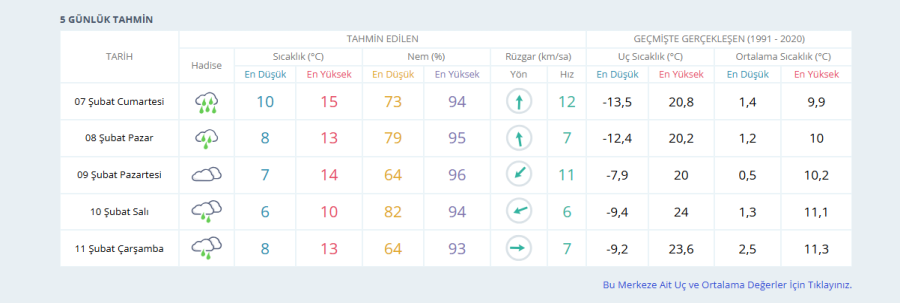 8 Şubat Pazar günü yağış şiddetini biraz azaltsa da kent genelinde aralıklı yağmurlar devam edecek. Sıcaklıklar 2-3 derece birden düşerek 13°C seviyelerine gerileyecek. Pazar günü özellikle akşam saatlerinde Uludağ eteklerinde sis ve pus görülebilir.