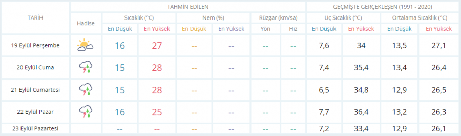 BURSA İÇİN 5 GÜNLÜK HAVA DURUMU TAHMİNİ