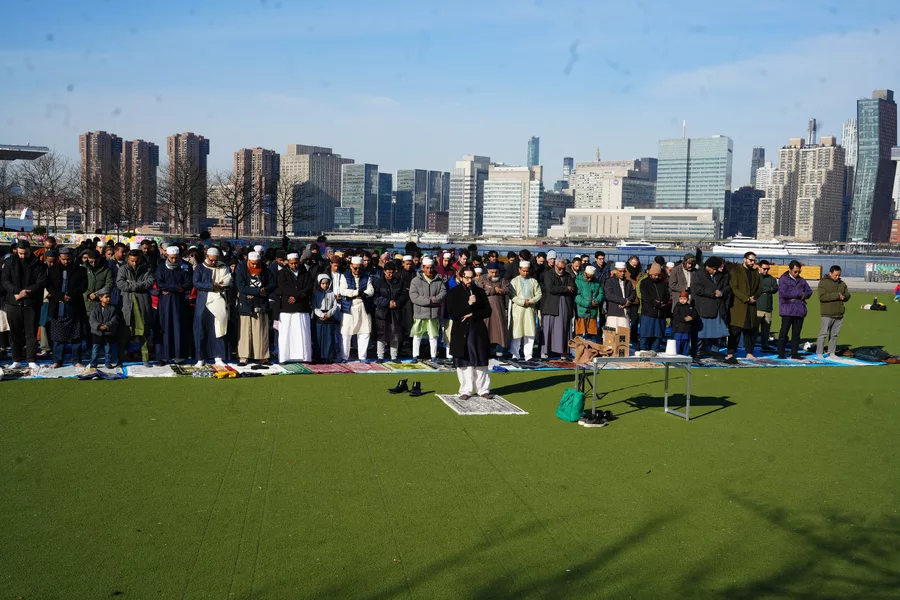 New York'ta Ramazan Bayramı coşkuyla karşılandı. Kentte yaşayan birçok Müslüman bayram namazı için sabahın erken saatlerinde Müslüman yoğunluğun fazla olduğu Queens, Brooklyn ve Manhattan başta olmak üzere New York'un çeşitli bölgelerinde onlarca camide bir araya geldi. Türk, Arap, Güney Asyalı ve Afrikalı toplulukların yoğun olarak yaşadığı bölgelerde camilerde yoğunluk yaşanırken, artan katılım nedeniyle açık alanlar da ibadet için kullanıldı. Kadınlar ve çocukların da yoğun ilgi gösterdiği bayram sabahında şehrin çeşitli noktalarındaki camiler ve açık alanlarda toplanan Müslümanlar, bayram namazı öncesinde Kur'an-ı Kerim tilaveti ve dualara eşlik etti. Namazın ardından cami önlerinde toplanan vatandaşlar birbirleriyle bayramlaştı. Kucaklaşarak bayram sevincini paylaşan Müslümanlar, yapılan dualarda barış, huzur ve dayanışma mesajları verdi. Şehrin farklı bölgelerinde de benzer manzaralar yaşanırken, New York'taki Ramazan Bayramı buluşmaları, farklı milletlerden Müslümanları aynı safta bir araya getirdi.