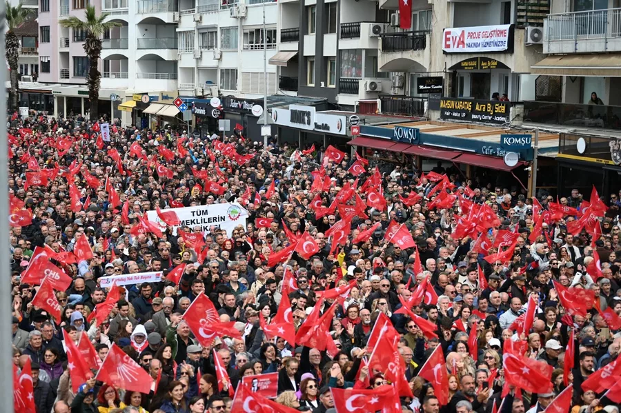 CHP Genel Başkanı Özgür Özel, Aydın'ın Kuşadası ilçesinde 'Millet İradesine Sahip Çıkıyor' mitingine katıldı. Mitingde CHP milletvekilleri, il ve ilçe belediye başkanları, partililer ve vatandaşlar yer aldı. Mitingde Duygu Günel, tutuklu olan eşi Kuşadası Belediye Başkanı Ömer Günel'in, CHP Aydın İl Başkanı Hikmet Saatçı ise tutuklu İstanbul Belediye Başkanı Ekrem İmamoğlu'nun mektubunu okudu. Mitingde konuşan Özel, "Darbeciler sokaklardan, diktatörler meydanlardan korkar ama bu meydan korkuyu evde bırakanların, cesareti kuşananların meydanı. Bugün Kuşadası'nın üzerinde kara bulutlar geziyor. Darbeciler Kuşadası'nı kuşatmaya çalışıyor, Kuşadası teslim olmaz, efeler diz vurur ama diz çökmez" dedi.