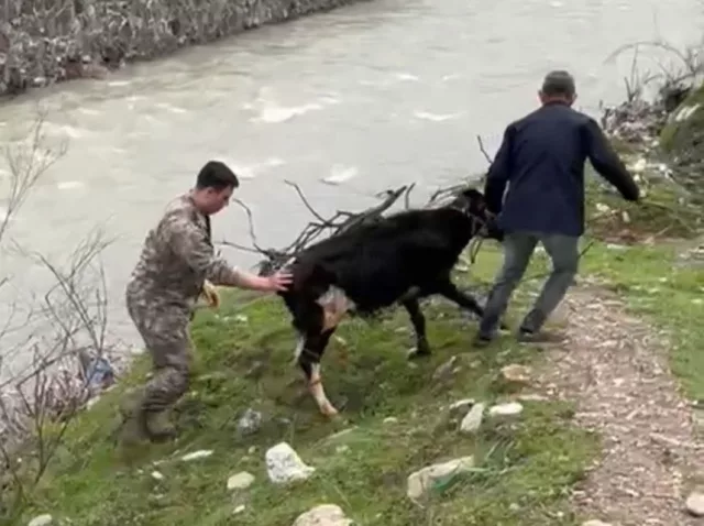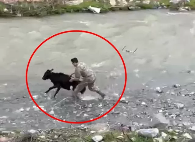 Bursa Bölge, 2026.03.27 13:20Siirt'te kaçan buzağı, dereye giren polis memuru tarafından yakalanarak sahibine teslim edildi; o anlar cep telefonu kamerasına yansıdı.