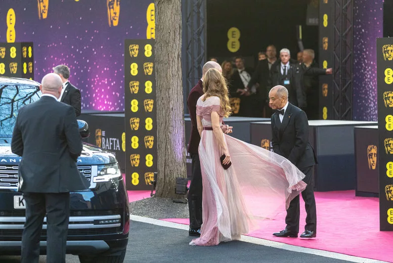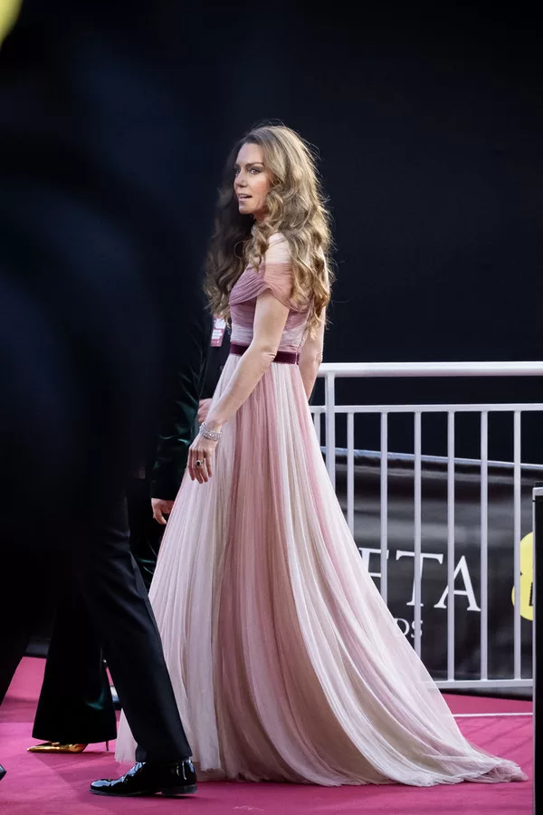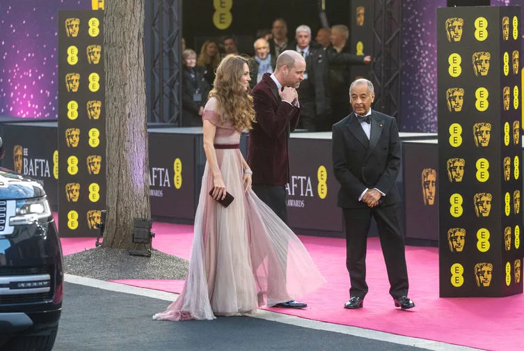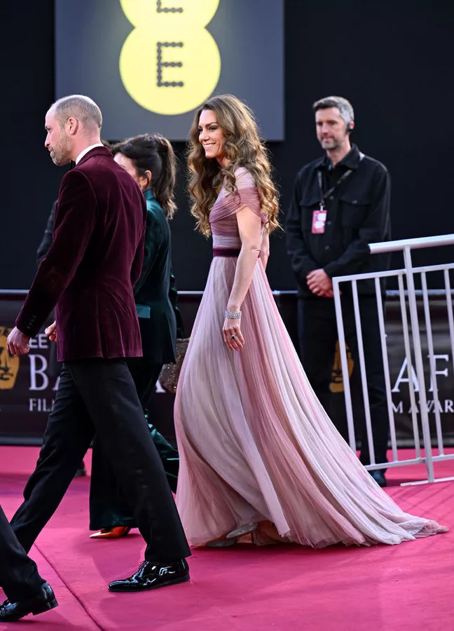 BAFTA'da gözler, skandalın ardından kameraların karşısına geçen kraliyet çiftinin üzerindeydi. Prenses Kate, 2019'da 100 Kadın Finans Galası'nda da giydiği pembe, yere kadar uzanan elbisesini BAFTA'da da giymeyi tercih etti.