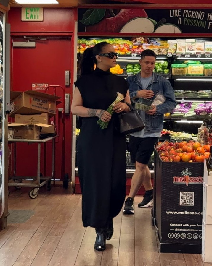 Alışverişe baştan aşağı siyah bir kıyafetle çıkan Rihanna, alacağı ürünleri seçerken market koridorlarında rahatça dolaştı ve kendisini tanıyanlarla selamlaştı.