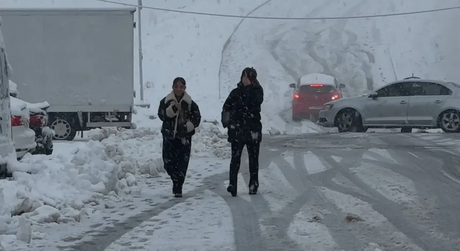 Özellikle yokuşlu yollarda ilerlemekte güçlük çeken bazı araçlar yolda mahsur kalırken, sürücülerin yardımına diğer vatandaşlar koştu.