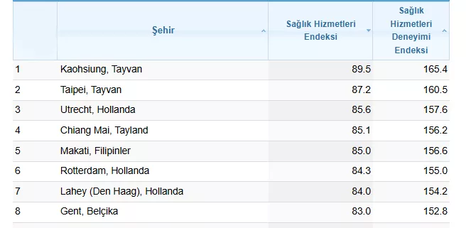 Endekste; sağlık hizmetlerine erişim, hizmet kalitesi, hasta deneyimi ve sistem verimliliği gibi başlıklar temel kriterler arasında değerlendirildi. Özellikle Utrecht, Viyana, Seul ve Amsterdam gibi şehirlerin yüksek puanlar alması, gelişmiş sağlık sistemlerinin küresel ölçekte öne çıktığını ortaya koydu.