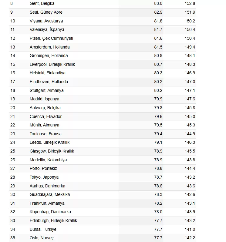 Bursa'nın; Oslo, Edinburgh ve Kopenhag gibi sağlık altyapısı güçlü şehirlerle aynı sıralama bandında yer alması dikkat çekti. Listenin üst sıralarında ise Asya ve Batı Avrupa şehirlerinin baskın olduğu görüldü.