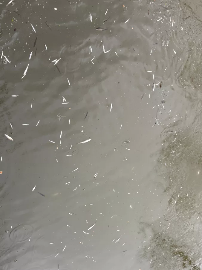 Çayın geçtiği ilçe merkezinde suyun üstünde çok sayıda ölü balık görenler, durumu yetkililere bildirdi.
