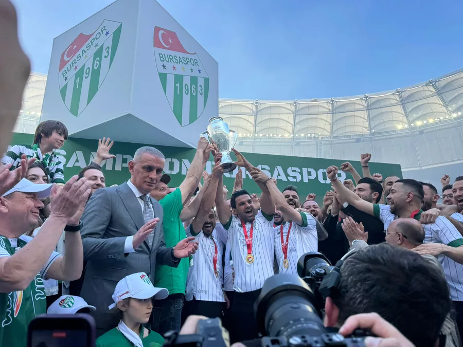 Tribünleri dolduran binlerce taraftar, tezahüratlar ve marşlarla şampiyonluğu kutlarken, statta renkli ve unutulmaz anlar yaşandı. Bursa'da uzun yıllar hafızalardan silinmeyecek bir güne imza atıldı.