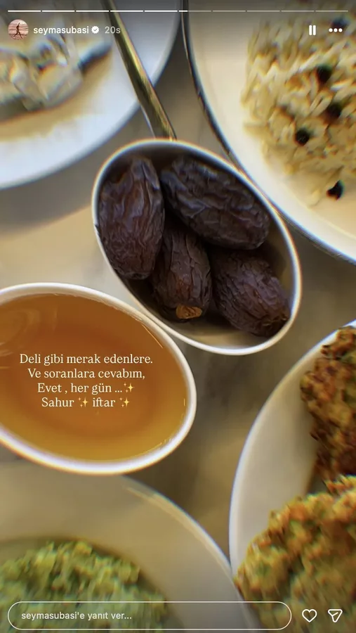 Birkaç hafta önce Türkiye'ye dönen Şeyma Subaşı, son günlerde özellikle sosyal medya paylaşımlarıyla dikkat çekiyor. Subaşı'nın markasının çalışanlarına verdiği iftar yemeği de gündem olmuştu. Ramazan ayına dair paylaşımlar yapması sonrası takipçileri Subaşı'ya sık sık oruç tutup tutmadığını sormaya başladı.