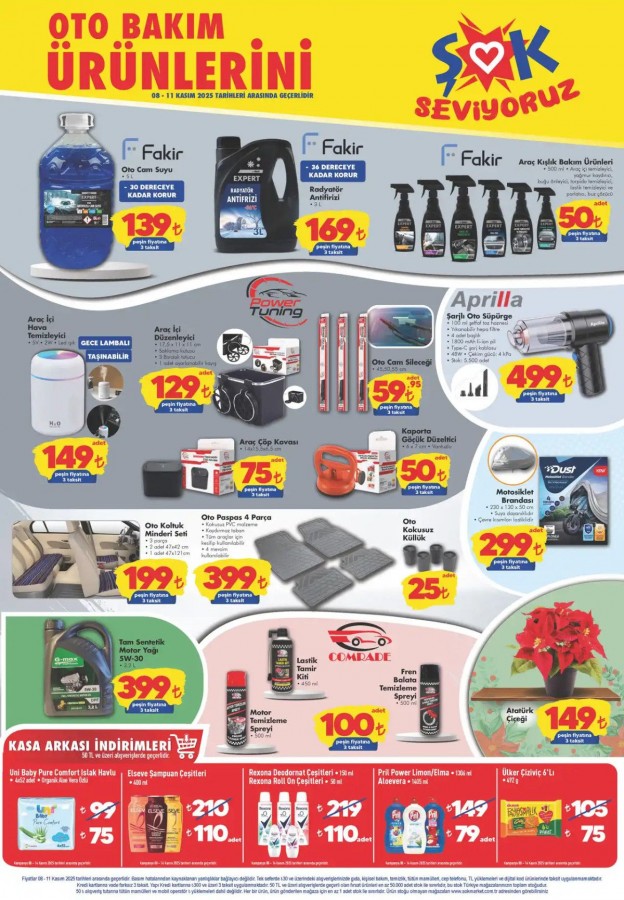8-11 Kasım 2025 tarihleri arasında geçerli olacak kampanya kapsamında oto bakım kategorisindeki birçok ürün raflarda indirimli fiyatlarla yer alacak.