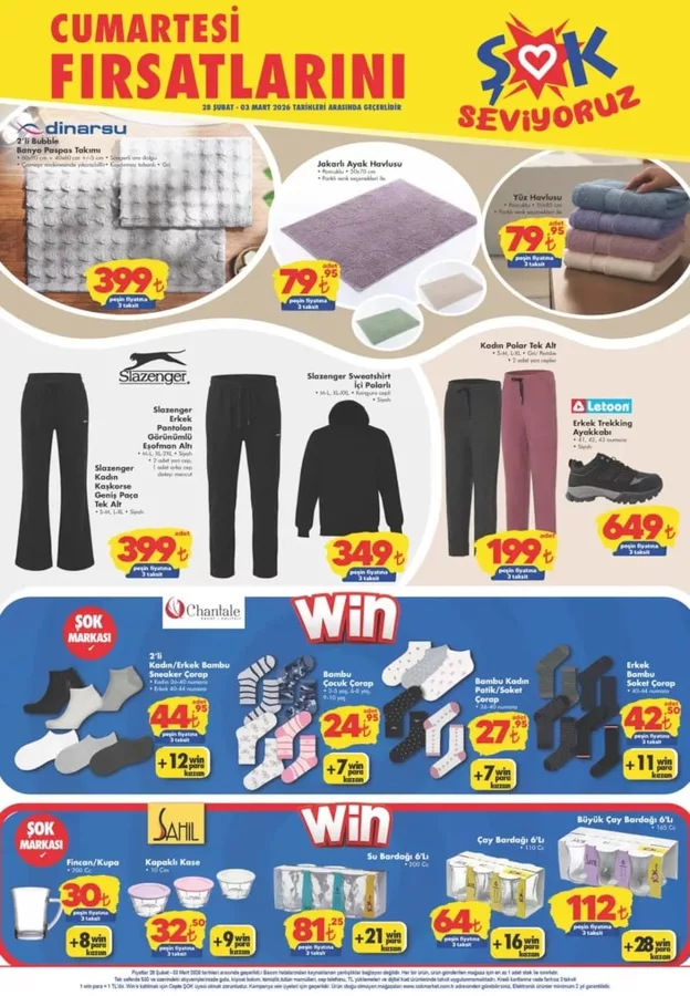 Yetişkinler için de cazip fırsatlar bulunuyor. Slazenger spor giyim ürünleri rahatlık ve kaliteyi bir arada sunarken, 50 TL ve üzeri alışverişlerde Kasa Arkası Fırsatları devreye giriyor.