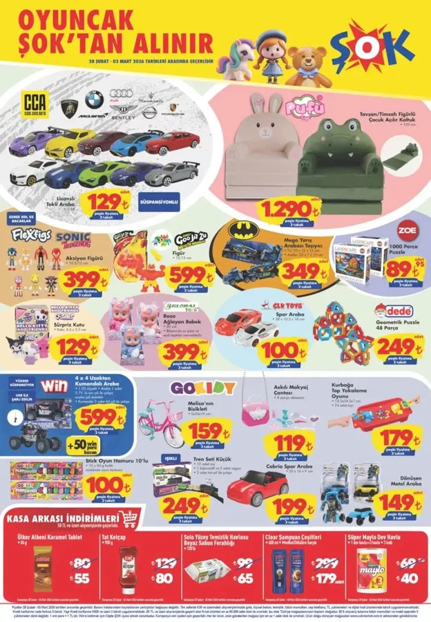 Bu hafta sonu ŞOK Market, hem çocukları hem de yetişkinleri mutlu edecek fırsatlarla raflarını doldurdu. Marketin özel kataloğunda çocuklara yönelik dev bir Oyuncak Şenliği yer alıyor.