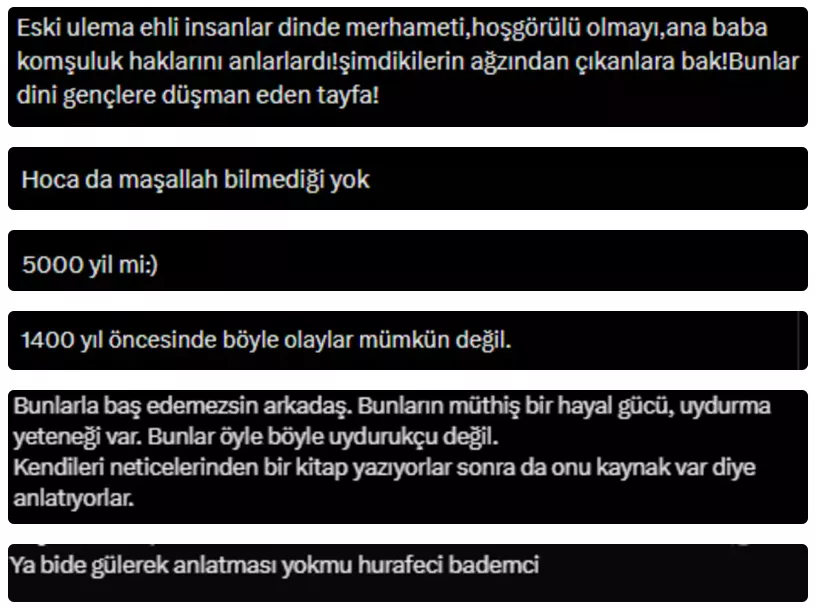 Ünlü'nün bu açıklamaları, sosyal medyada kısa sürede geniş yankı buldu ve birçok kullanıcı tarafından paylaşıldı. Kimileri Ünlü'ye tepki gösterdi. Gelen yorumlardan bazıları şöyle:
