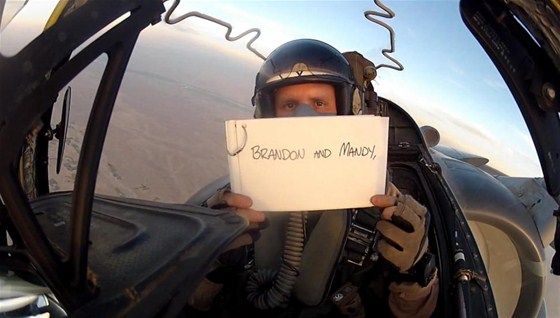 Yüzbaşı Krivohlavy, kağıtlara yazdığı "Brandon ve Mandy, bu hayatlarınızın sonuna kadar hatırlayacağınız bir gün ve ben keşke orada olup bu günü sizinle paylaşabilsem. Birlikte çıldırın!" mesajını yayınladı.