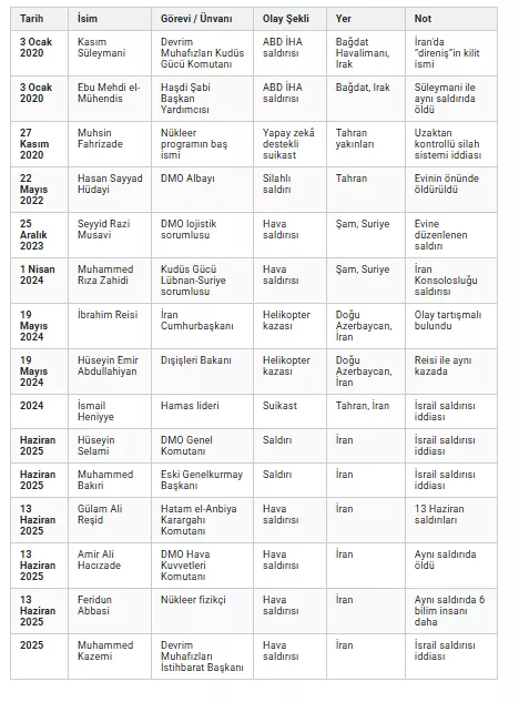Ancak bu yaşananlar kimse için pek sürpriz olmadı. İran uzun yıllar boyunca birçok önemli ismini, ABD ve İsrail saldırılarında suikasta kurban verdi.