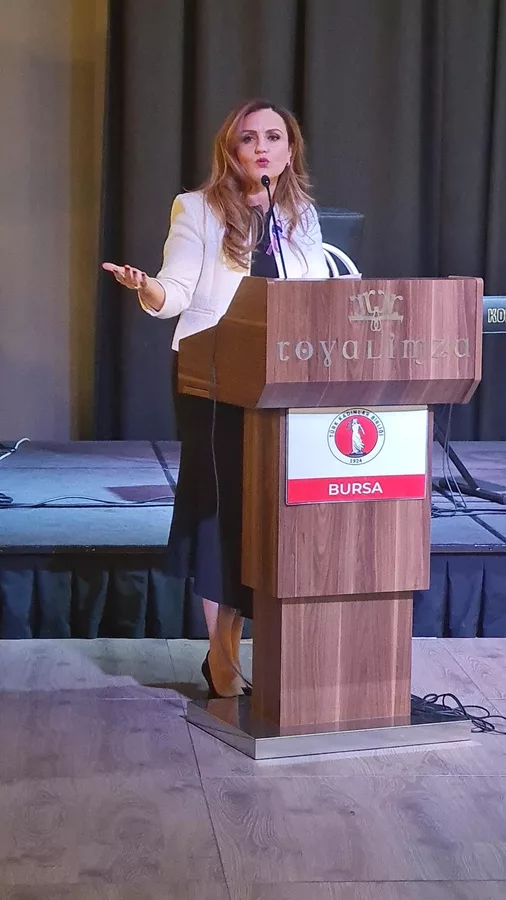 Gecenin en anlamlı anları, TKB Bursa'nın Hatay'da hayata geçireceği yeni projenin sorumlusu olan Hataylı depremzede Endüstri Mühendisi Özge Çakır'ın kürsüye gelmesiyle yaşandı. Hataylı kadınların selamını Bursa'ya getiren Çakır; "Bahur, zahter ve defne kokusunu, baharın umudunu getirdim" sözleriyle salonu derin bir sessizliğe sevk etti. Bir şehri binaların değil, bilinçli insanların ve güçlü kadınların ayağa kaldıracağını vurgulayan Çakır'ın konuşması, katılımcılar tarafından ayakta alkışlandı.
