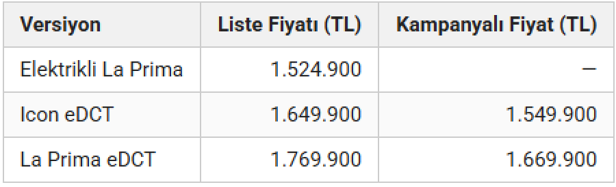 *Listede yer alan Fiat 600 ve 500e modelleri 2025 model yılıyla satılıyor.