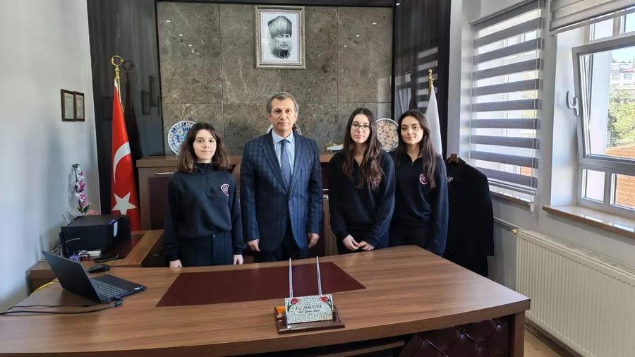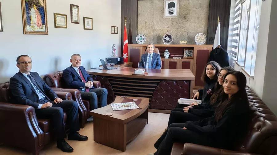 TÜBİTAK yarışmasında bölge ikincisi olan gençler Milli Eğitim Müdürü'nü ziyaret etti