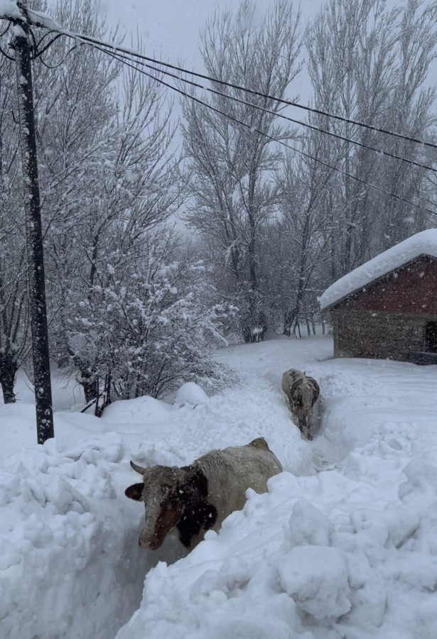 Tunceli'de kar kalınlığı 1,5 metreyi aştı: İnekler karda kayboldu