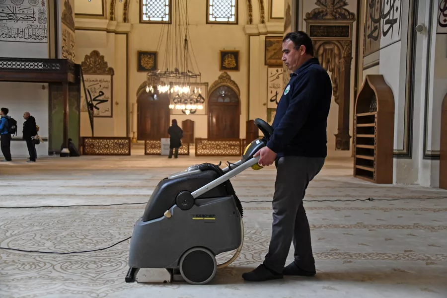 Osmangazi Belediyesi Temizlik İşleri Müdürlüğü tarafından yürütülen çalışmalar kapsamında cami içerisindeki halılar detaylı şekilde süpürülerek dezenfekte edildi. Yüksek teknolojiye sahip makinelerle derinlemesine temizlenen halılar, hijyen standartlarına uygun hale getirildi. Bunun yanı sıra pencere, kapı, mihrap, minber, kürsü ile ayakkabılıklar büyük bir titizlikle silindi. Şadırvan ile abdesthane bölümlerinde de kapsamlı temizlik yapılırken, cami avlusu ve çevresinde ise yıkama çalışmaları gerçekleştirilerek alan genelinde hijyen seviyesi yükseltildi.