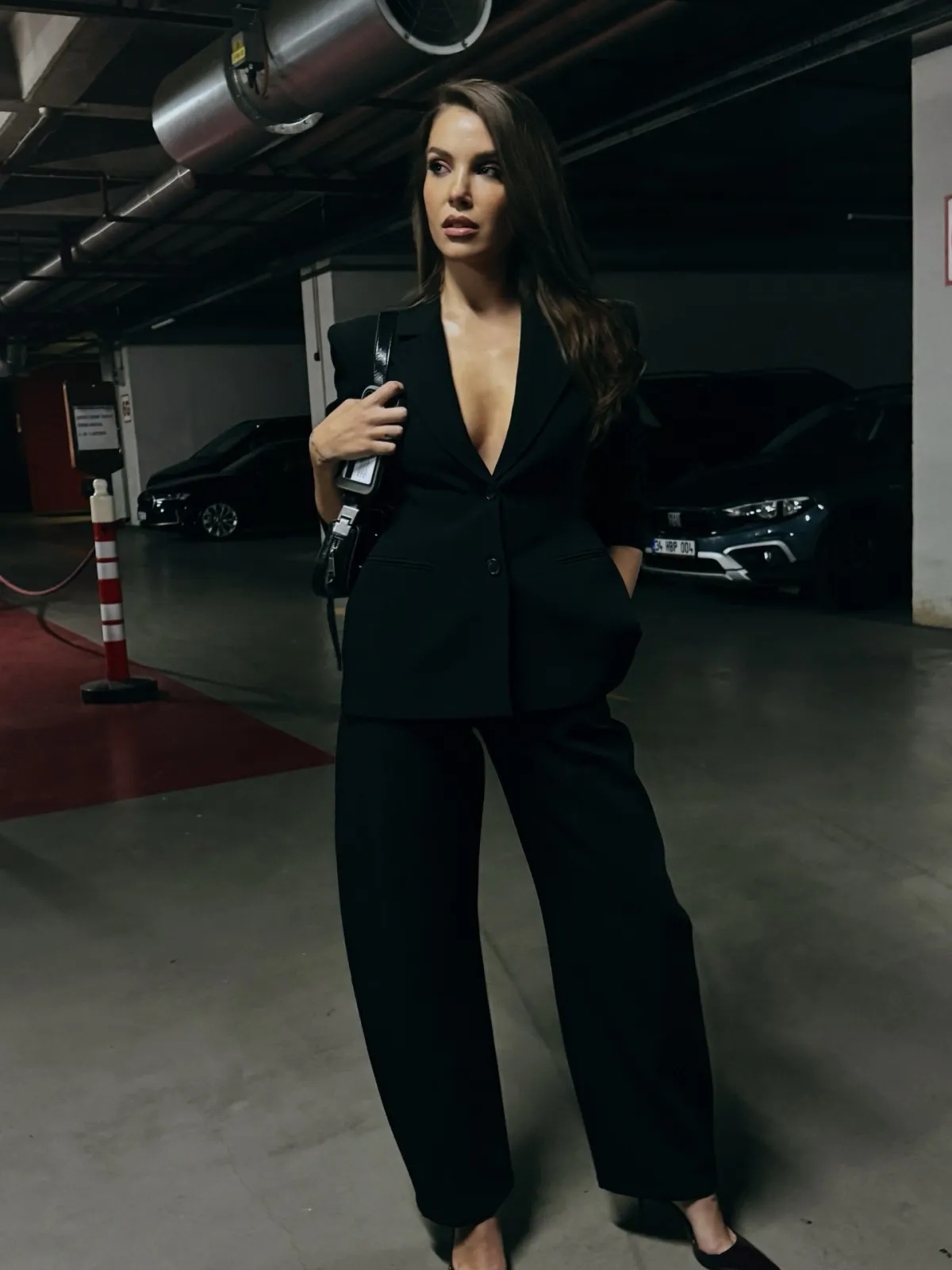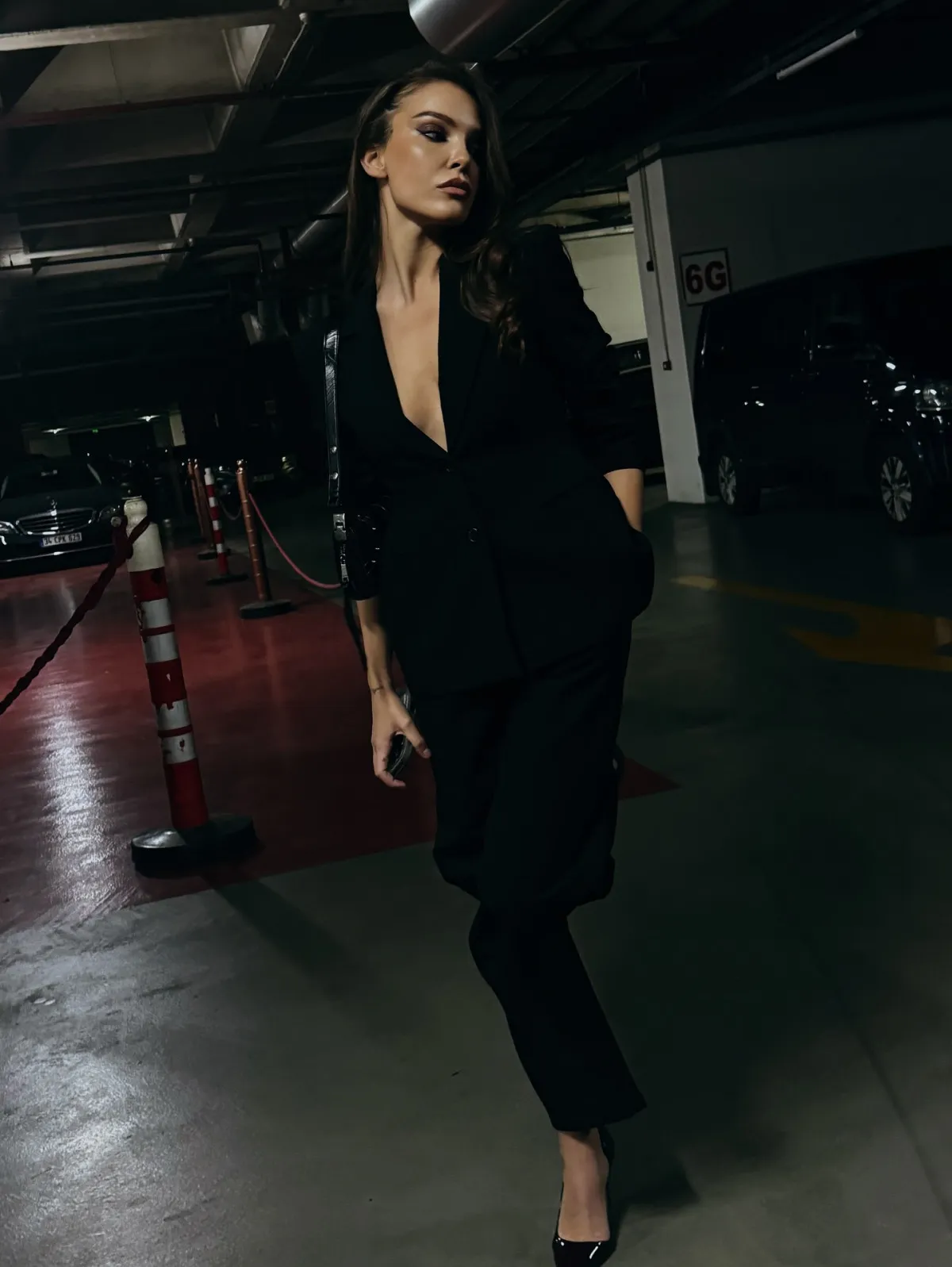 Güldiken son olarak siyah bir takım giydi. Ceketinin içine hiçbir şey giymeyen başarılı oyuncu verdiği pozlarla hayranlarının dikkatini çekti.