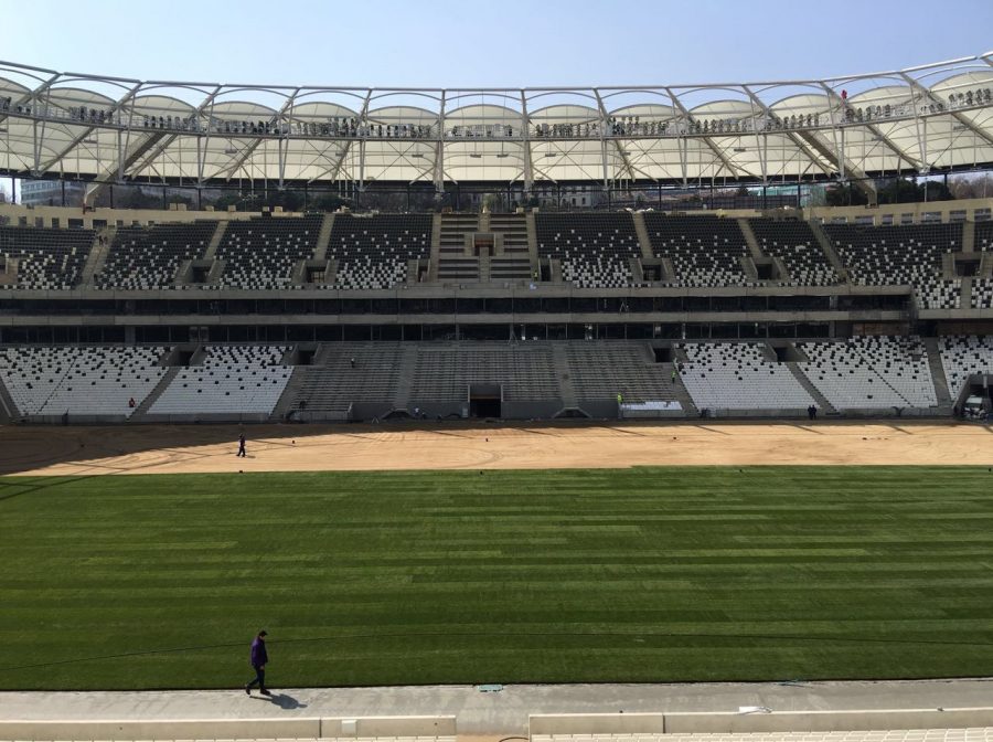 Rulo halinde stada getirilen çimler, titiz bir şekilde zemine yerleştiriliyor. Son paylaşılan fotoğraflarda çim serme işleminde zeminin yarısına kadar gelindiği görülüyor.