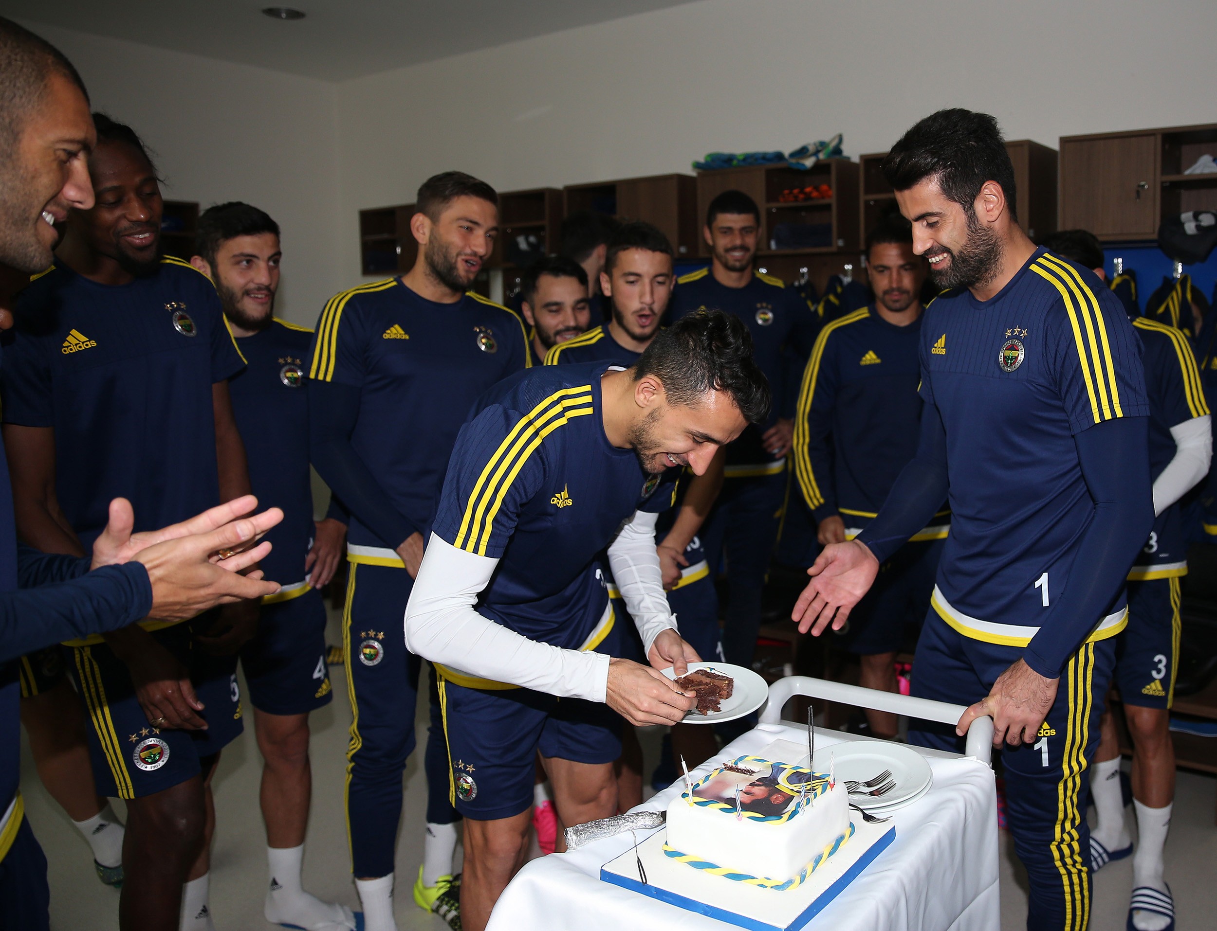Osmanlıspor maçının hazırlıklarını Fenerbahçe Can Bartu Tesisleri'nde yaptığı antrenmanla sürdüren takımda, antrenman öncesinde soyunma odasında doğum günü pastası kesildi.