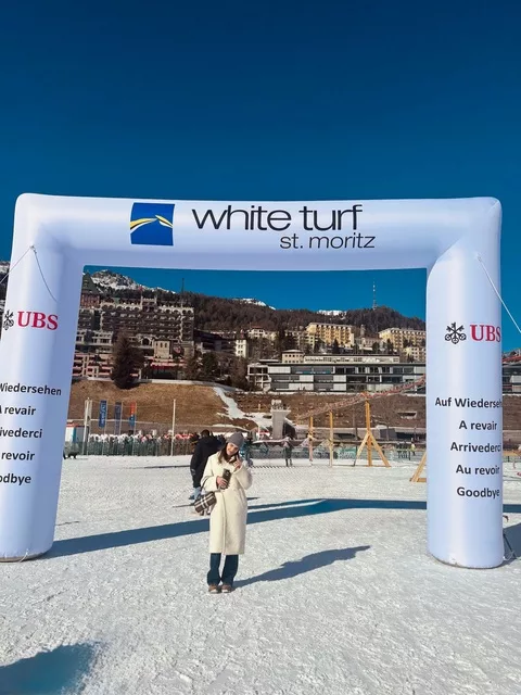 Keyifli vakit geçiren oyuncu, ayrıca Saint-Moritz'de düzenlenen White Turf adlı at yarışını izledi.