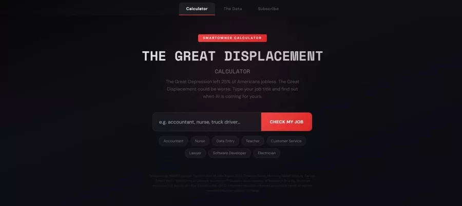 Herkese açık olan TheGreatDisplacement.ai, oldukça basit bir kullanım sunuyor. Kullanıcılar yalnızca iş unvanlarını yazarak mesleklerinin otomasyona ne kadar açık olduğunu, tahmini işini kaybetme yılını ve yapay zeka çağında rekabetçi kalabilmek için önerilen adımları içeren bir yol haritasını görüntüleyebiliyor.