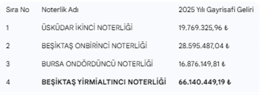 162 adet boşta olan noter için başvuruların Adalet Bakanlığı'na yapılması gerekiyor. Bunlar arasında en yüksek kazanca sahip olan noter ise 66 milyonluk geliriyle Beşiktaş 26'ncı Noterliği oldu.