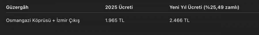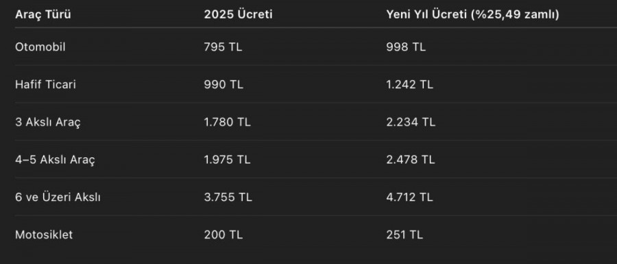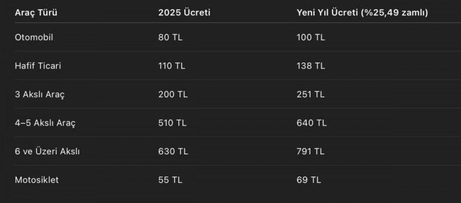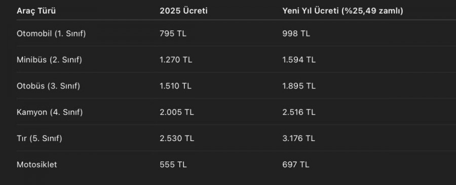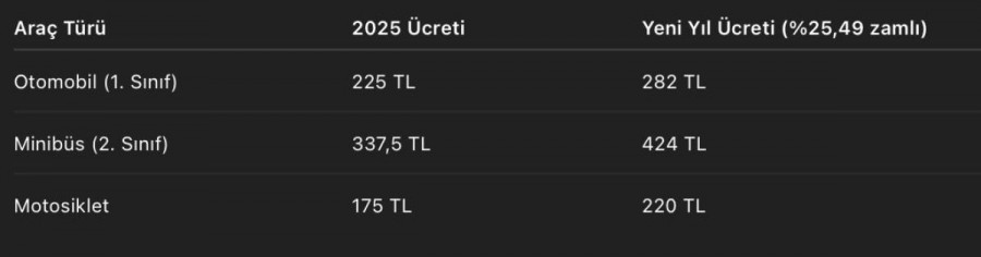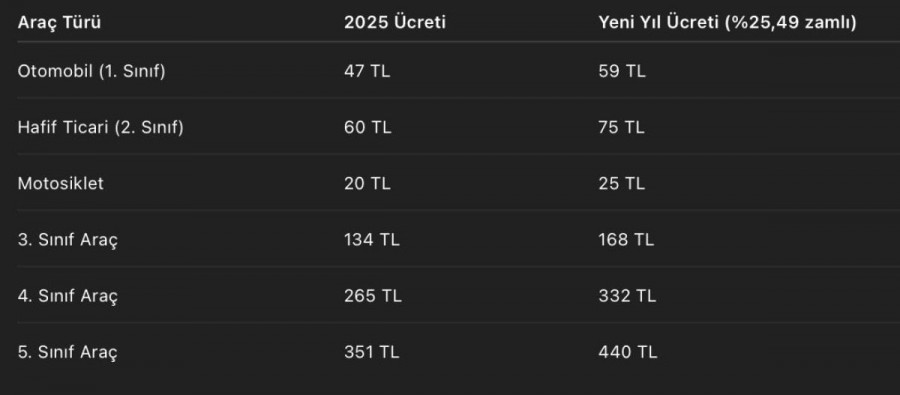 2026 yılının ilk gününden itibaren geçerli olacak yeni tarifeler, özellikle büyük şehirlerde yaşayan ve her gün köprü ya da otoyol kullanan milyonlarca vatandaşı etkileyecek.