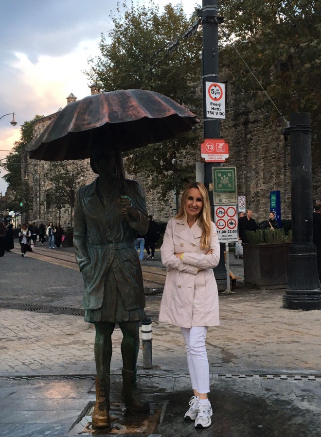 Aynı anda yüzlerce atılan adımlar gün için de binleri buluyordur hiç şüphesiz... İş çıkışı olduğu için kimi evine gitme telaşında, kimi sevgilisine sımsıkı sarılmış uğurlamak istemezken, tatlı yaşlılarımız ise hava alıp yabancı biriyle de olsa sohbet ederek gününü tamamlıyor. Tüm bu gözlemlerim sonrası baktım ki genci yaşlısı "Şemsiyeli Kadın Heykeli" önünde fotoğraf çekiniyor. Hemen telefonuma sarıldım ve artık benim de kendisiyle bir fotoğrafım var...