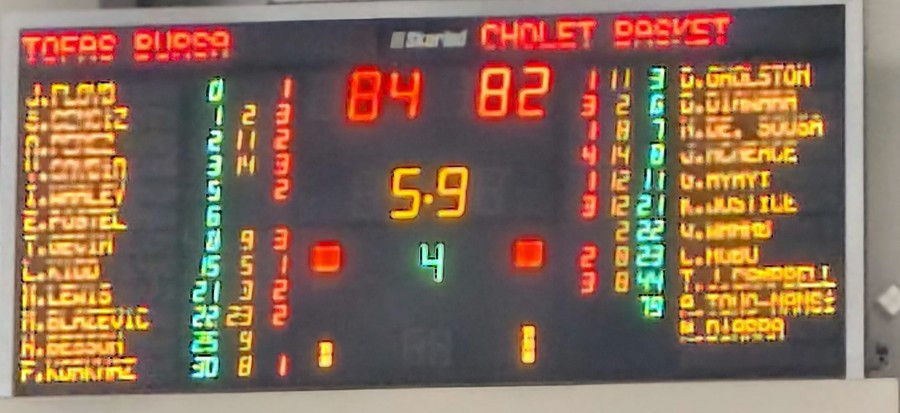 Skorborda bakın, bitime 5.9 saniye var Tofaş 84-82 önde. Mavi Yeşilliler topu kenardan oyuna sokacak. Evet top oyuna sokuldu, ama bir anlık dikkatsizlik topun rakibe geçmesine neden oldu, saliselerin sayıldığı ve taraftarların nefeslerini tutarak izlediği pozisyonda Cholet'li oyuncunun attığı top potayı buldu, ama çemberin içinden geçmedi. Basketbolda bitiş düdüğü çalmadan hiçbir şeyin garantisi olmadığını bir kez daha görmüş olduk.