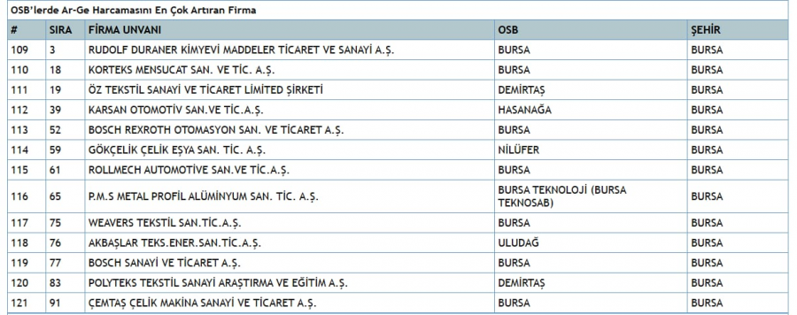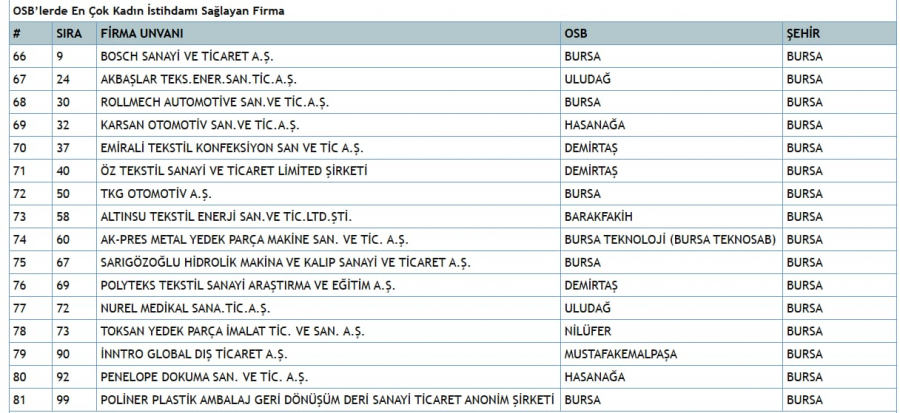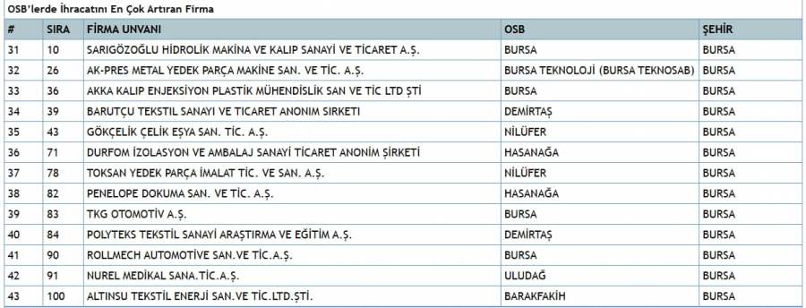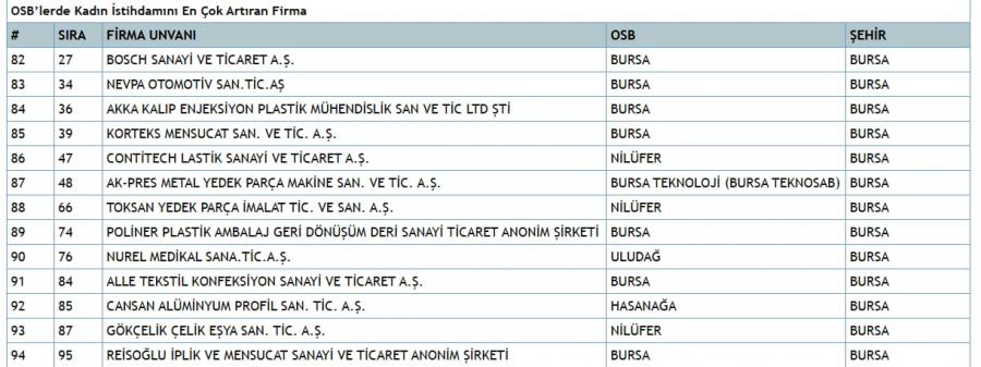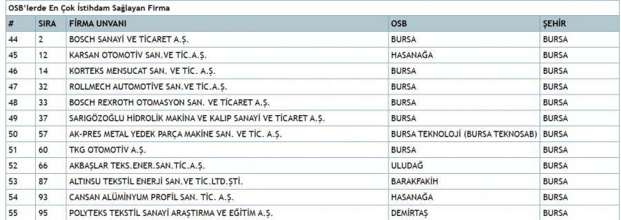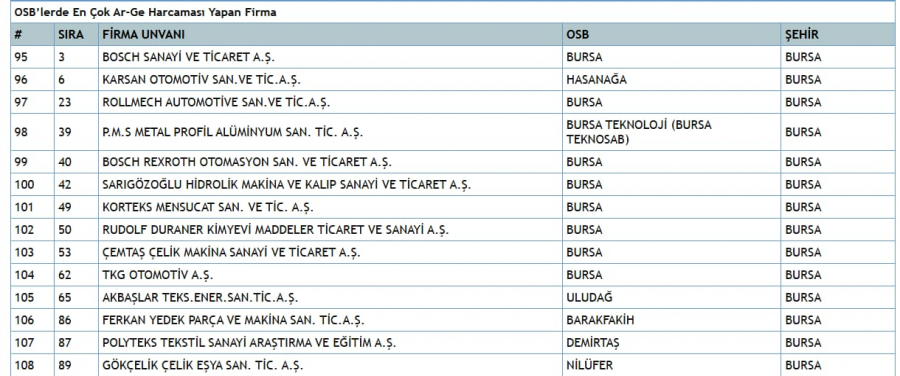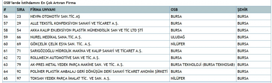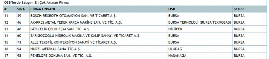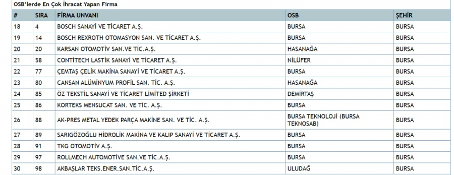 NOT: Bursa firmalarının detaylı listesini yazımın altındaki tablolarda paylaştım.