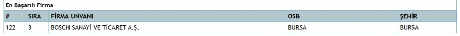 -En başarılı firma kategorisinde BOSCH, 3'üncü sırada.